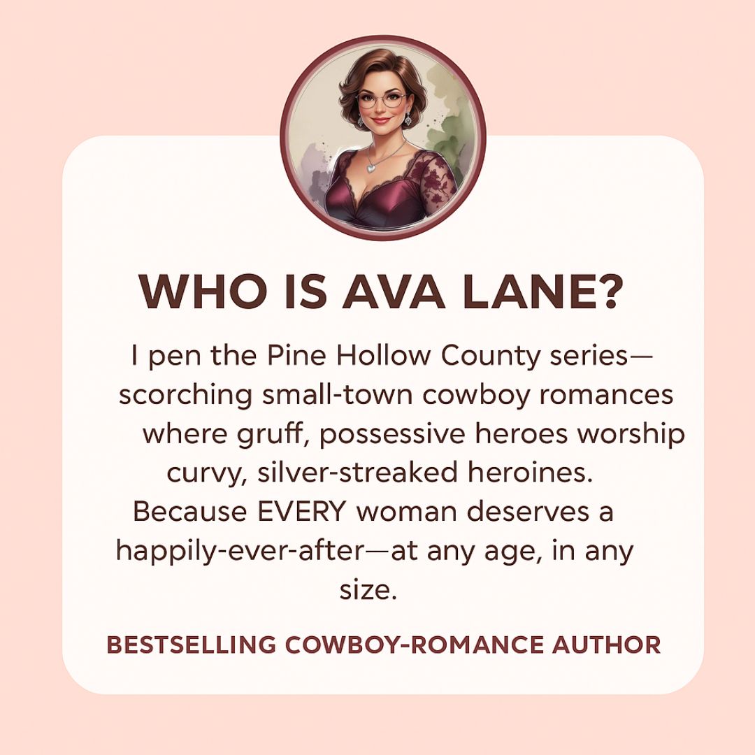 Ava Lane is the bestselling author of heart-pounding cowboy romance novels that celebrate curvy heroines and fiercely protective heroes. Her Pine Hollow County series is your secret escape into passionate, healing love stories that women crave deeply.